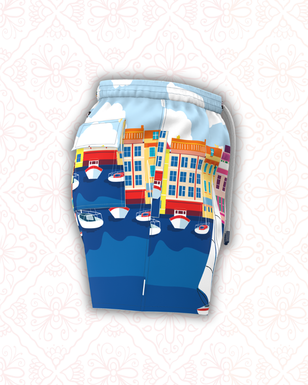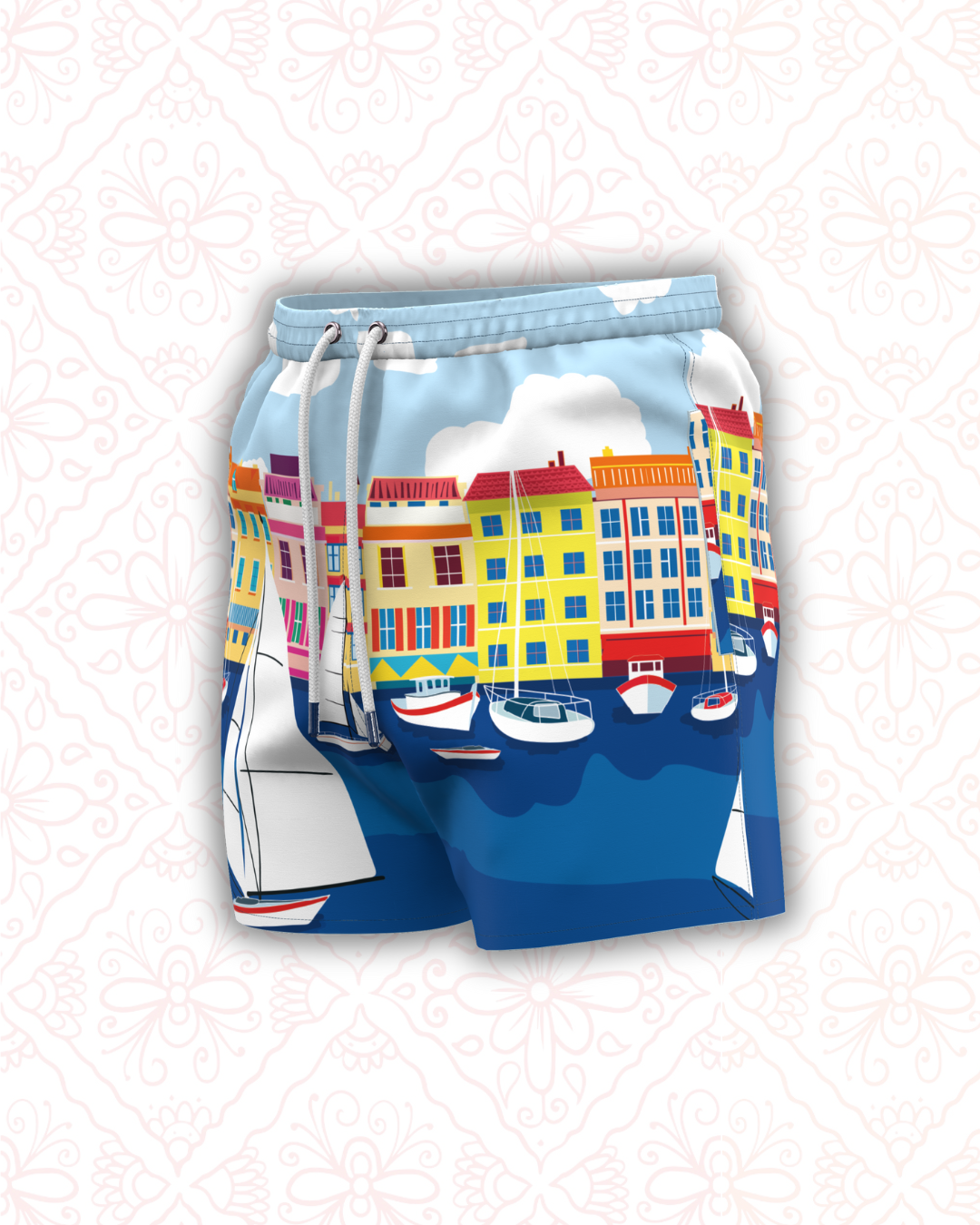 The subtle sailboat print brings a touch of nostalgia and wanderlust, while the clean cut silhouette keeps it modern. Finished with the Lumi logo and an adjustable drawstring waist, they're made for slow mornings, salty skin, and smooth sailing.